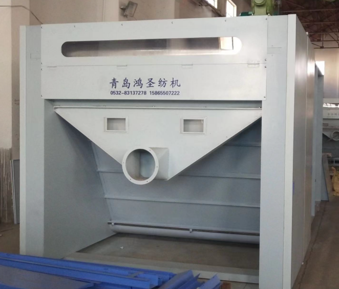 經(jīng)預(yù)開松除雜質(zhì)的各種不同纖維經(jīng)輸棉管道送入混棉箱,經(jīng)角釘簾輸送,由輸棉道落入梳理機(jī)喂入簾。